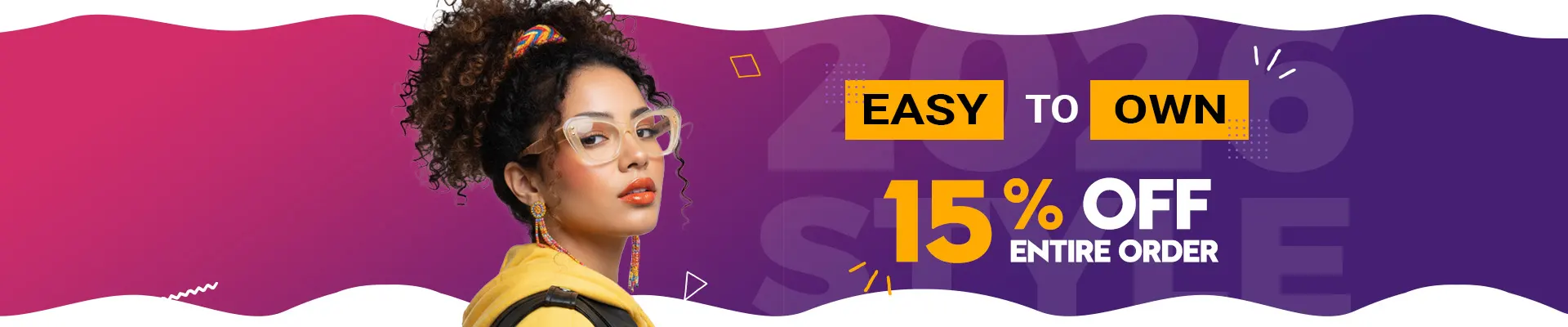 15% Off Entire Order. Applies to all the frames and lenses site-wide. Not for accessories. Free shipping and returns