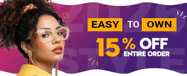 15% Off Entire Order. Applies to all the frames and lenses site-wide. Not for accessories. Free shipping and returns
