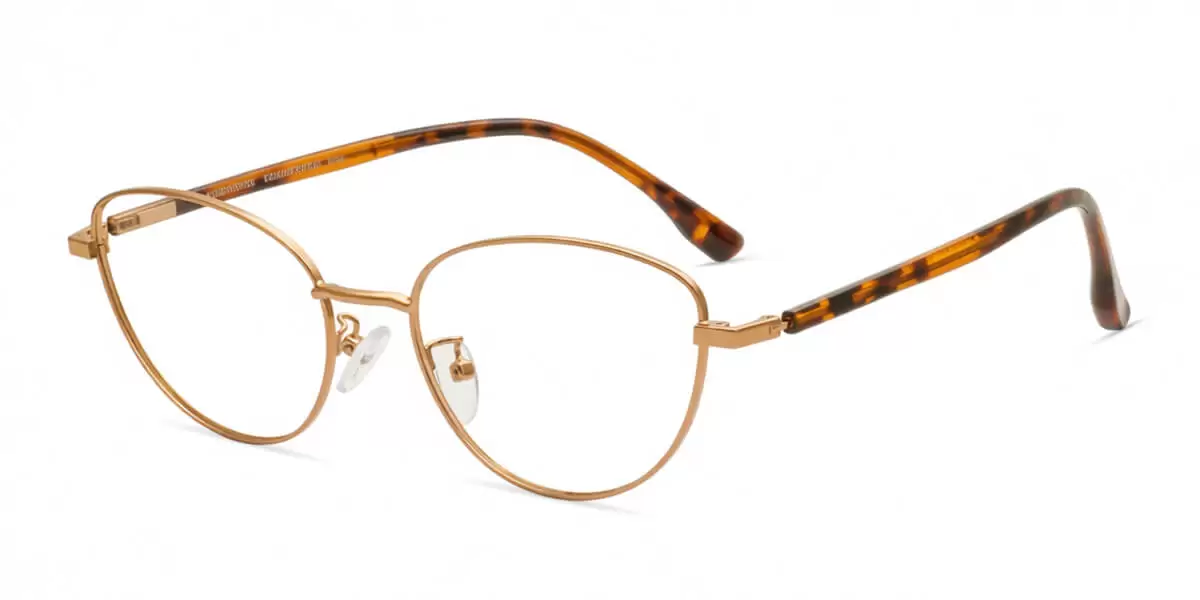 Infuse your daily look with a touch of effortless charm in our large-scale metal alloy frames. This design masterfully blends a soft oval silhouette with an upswept cat-eye accent, creating a look that is simultaneously minimalist and playful. The standout feature is the tortoiseshell patterned temples, which house an internal wire core. This premium construction not only adds a vintage-inspired aesthetic but also allows the temples to be finely adjusted for a bespoke fit that contours perfectly to your head shape.