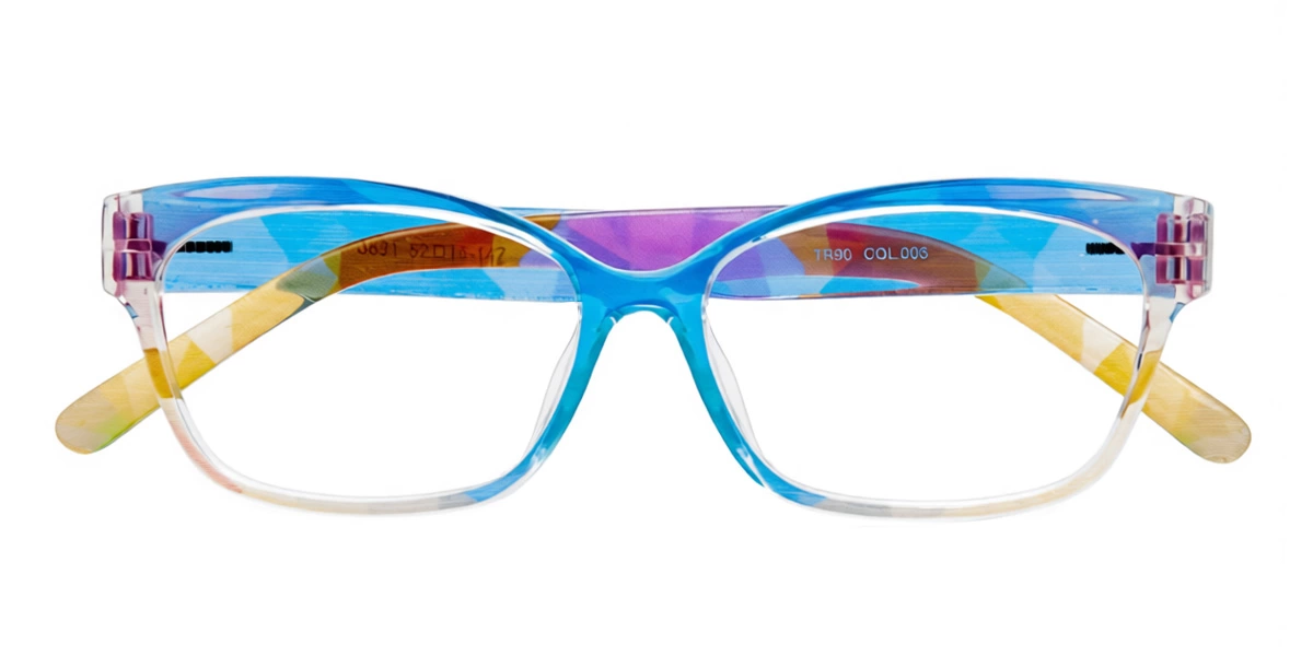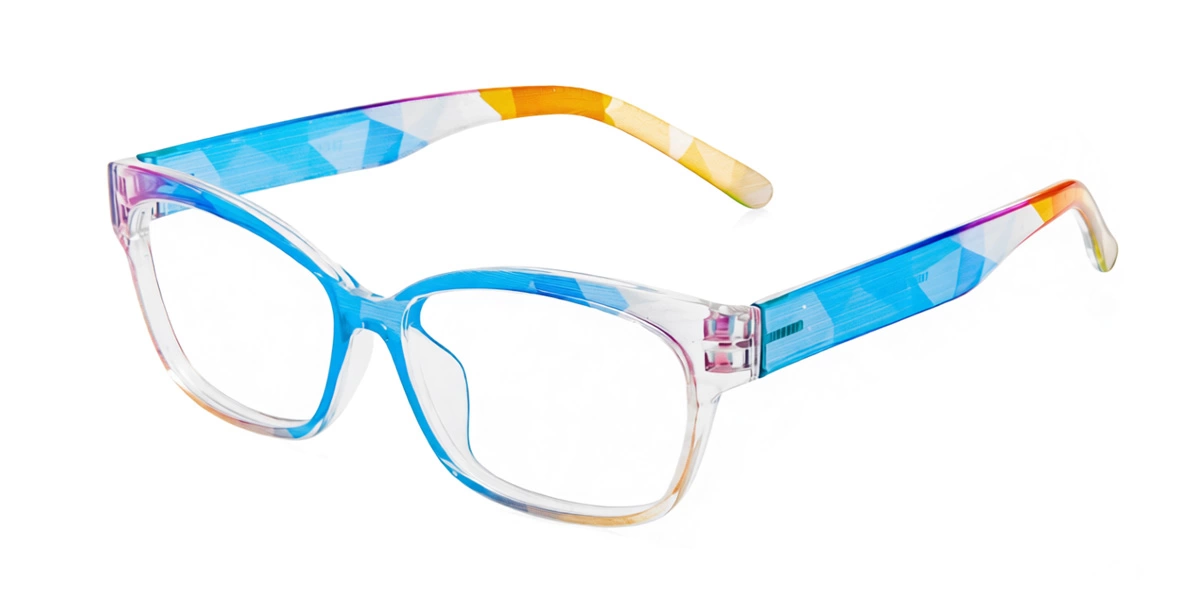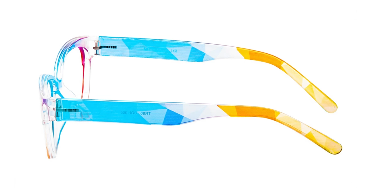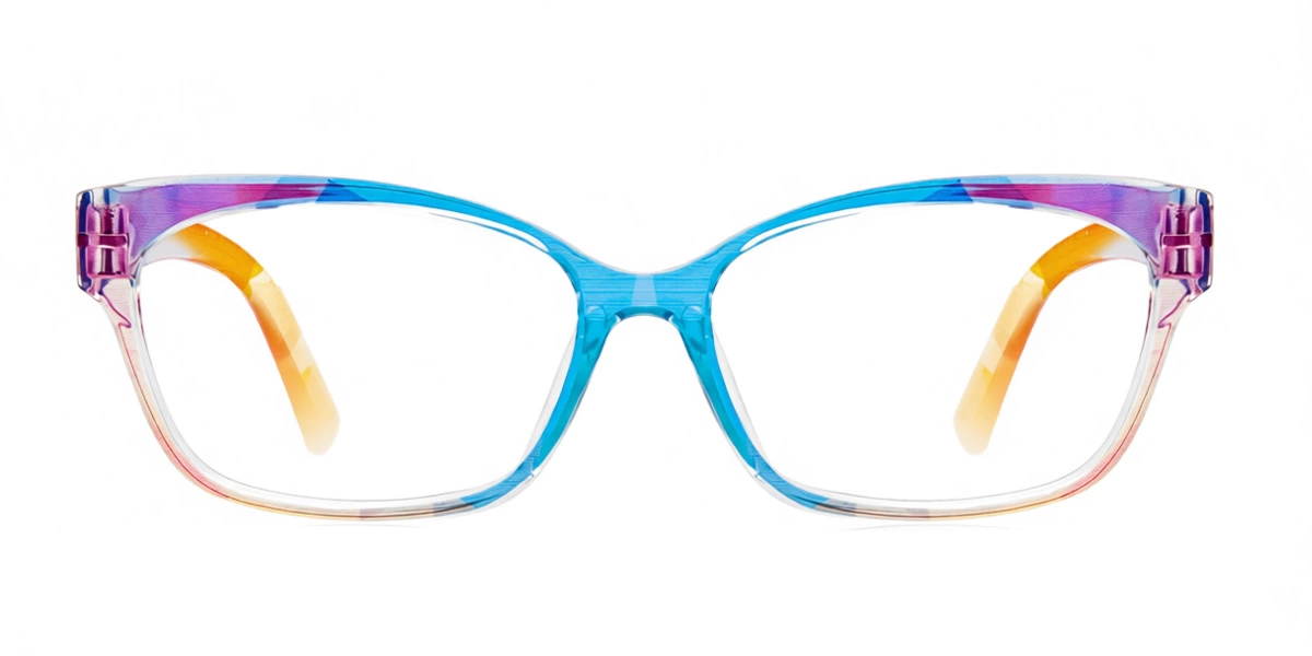 Infuse your daily style with a burst of color and light with these medium-fit oval frames. This design features an elegant "winged" outer corner that subtly extends outward, giving the classic oval shape a chic, cat-eye-inspired lift. Crafted from crystal-clear TR90, the frames utilize a unique outer-rim printing technique—the core of the glasses remains beautifully transparent, while the exterior surfaces are adorned with vivid, high-definition patterns. This creates a stunning "floating color" effect that adds depth and artistic flair to your face.