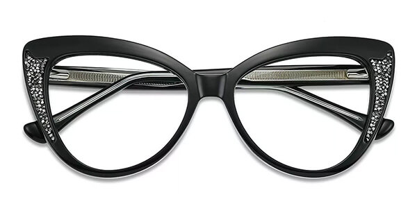 This is an elegant medium horn-shaped frame made of high-quality hand-polished acetate. The overall look is refined and embellished with lightweight alloy sequins. The edge of the frame is decorated with a metal logo that extends to the temple. There are 4 colors to choose from: black, tortoiseshell, red and blue, which can be matched with any outfit.