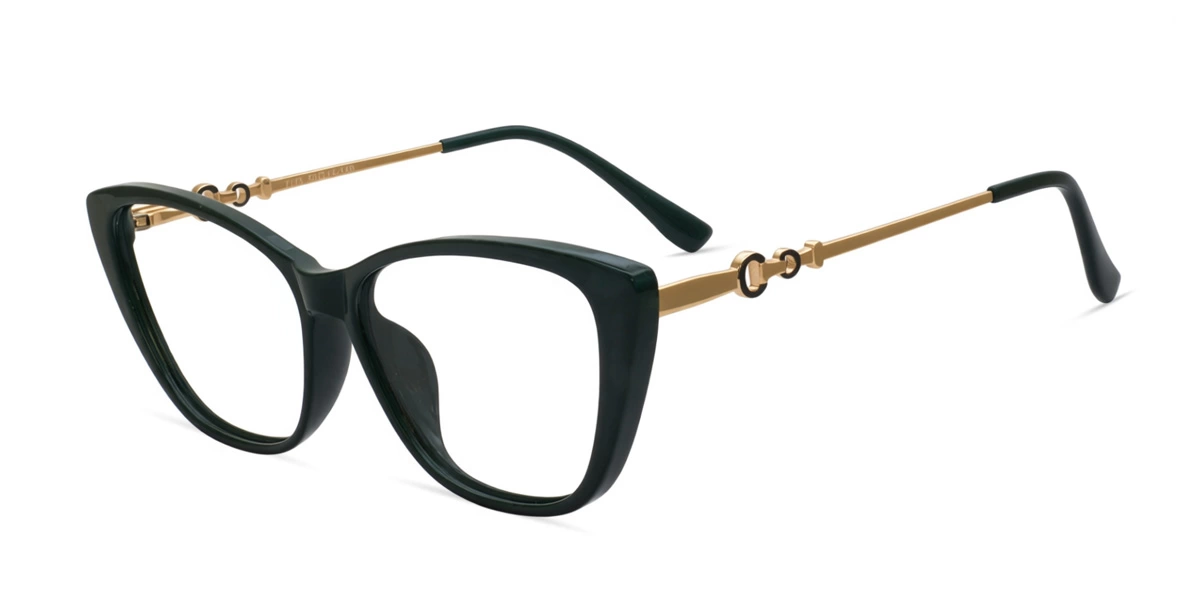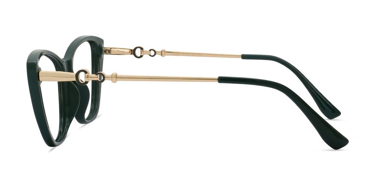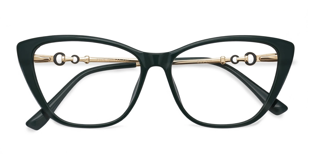 Embrace a look of effortless femininity with these medium-fit frames, featuring a soft cat-eye silhouette defined by its fluid, sweeping lines. Crafted from high-grade TR90, the frame front offers a smooth, lightweight feel that complements the natural curves of the face. The standout design element lies in the electroplated metal temples, which feature a unique double-circle motif—one large and one small—creating a sophisticated, jewelry-inspired detail that adds a touch of modern artistry to your profile.