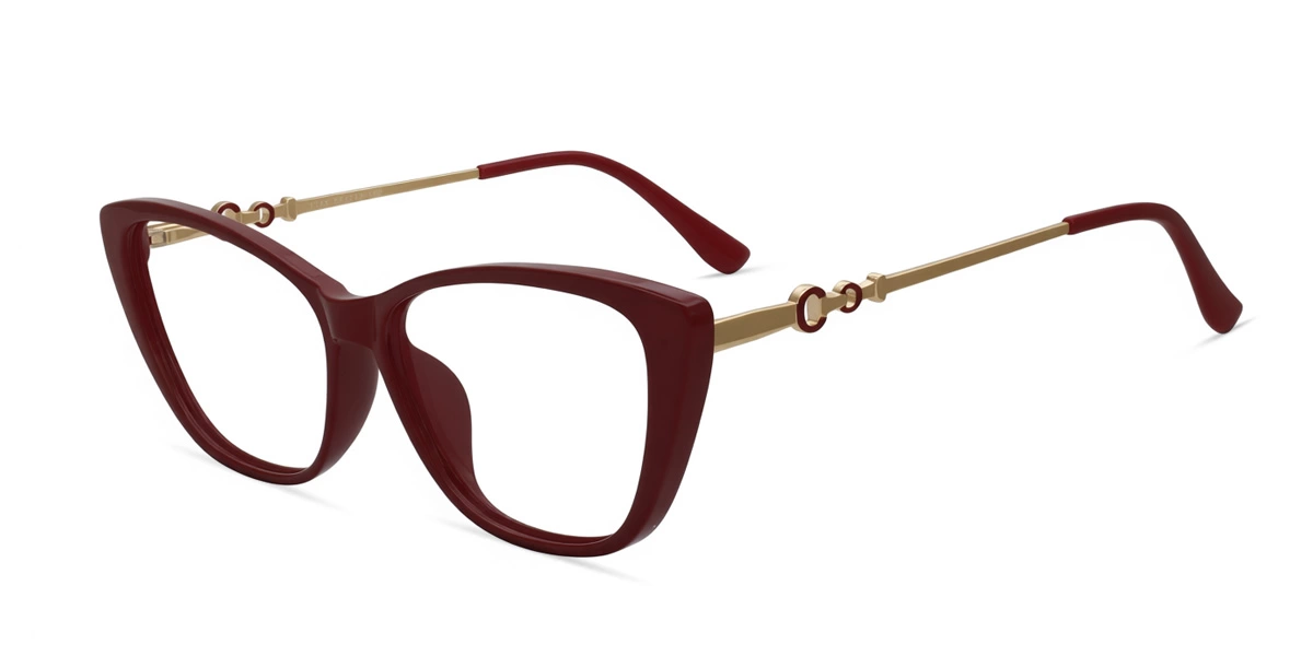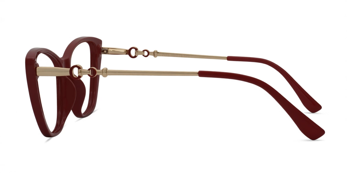 Embrace a look of effortless femininity with these medium-fit frames, featuring a soft cat-eye silhouette defined by its fluid, sweeping lines. Crafted from high-grade TR90, the frame front offers a smooth, lightweight feel that complements the natural curves of the face. The standout design element lies in the electroplated metal temples, which feature a unique double-circle motif—one large and one small—creating a sophisticated, jewelry-inspired detail that adds a touch of modern artistry to your profile.