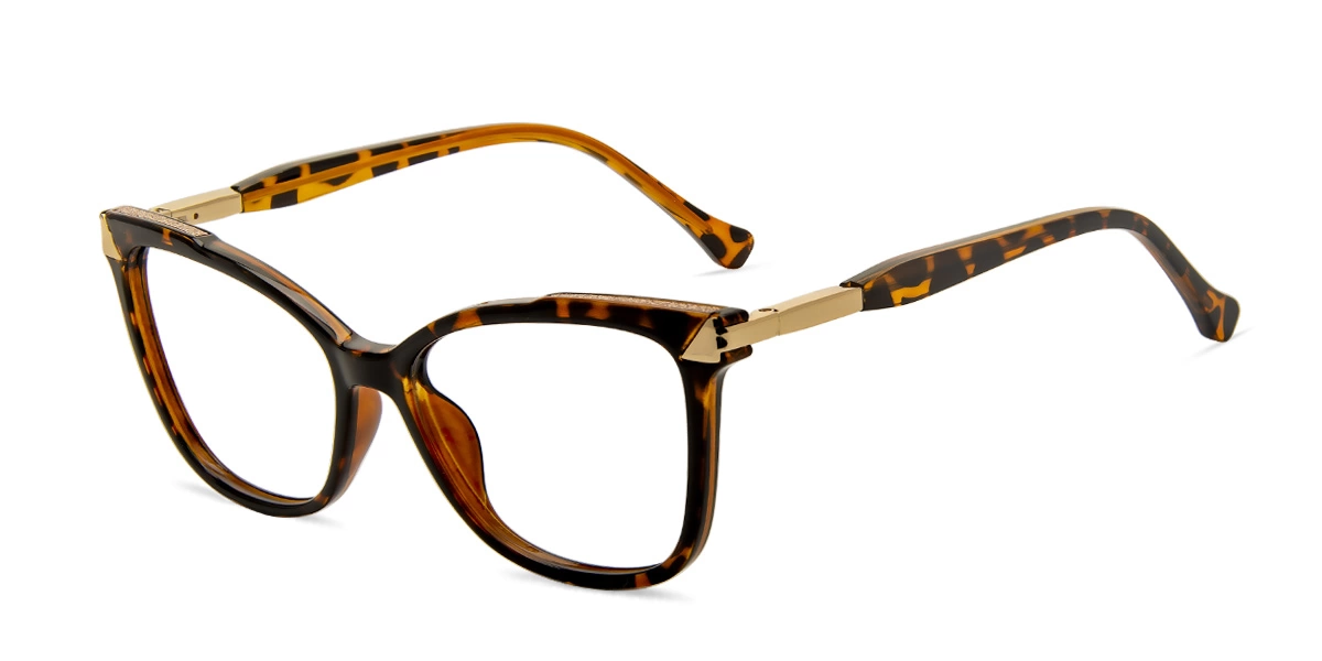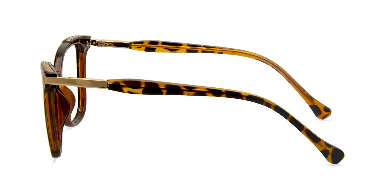 Thoughtful decorative details elevate the modern design. Distinct triangular metal hardware adorns each frame corner, infusing sleek contemporary style, while delicate shimmering inlays along the upper rims add layered texture and eye-catching glamour. Engineered for dependable comfort, the frames feature a contoured medium integrated nose bridge, robust spring hinges for smooth flexing movement, and non-slip reinforced temple arms. Every functional detail ensures a secure, pressure-free fit for extended wear.