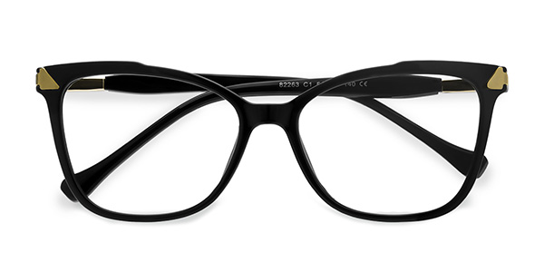 These cat-eye glasses have a sleek design with stainless steel construction and eye-catching exquisite pattern details on the corners. Adjustable nose pads and plastic temple tips provide a comfortable fit. The medium-sized frames have a satin finish and are available in the following colors: black, gray, red and orange.