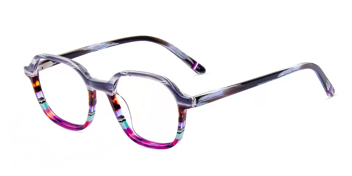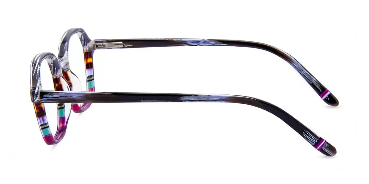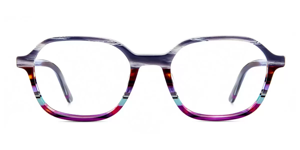 Blending a bold architectural silhouette with a playful exploration of color, these medium-fit oval frames are a true standout. Handcrafted from premium Cellulose Acetate, these frames showcase a sophisticated dual-layered stripe motif: the upper half features a refined, solid-toned stripe pattern, while the lower half bursts into a vibrant, multi-colored striped finish. This unique "horizontal split" creates a visual depth that brightens the eyes and complements a wide range of styles.
