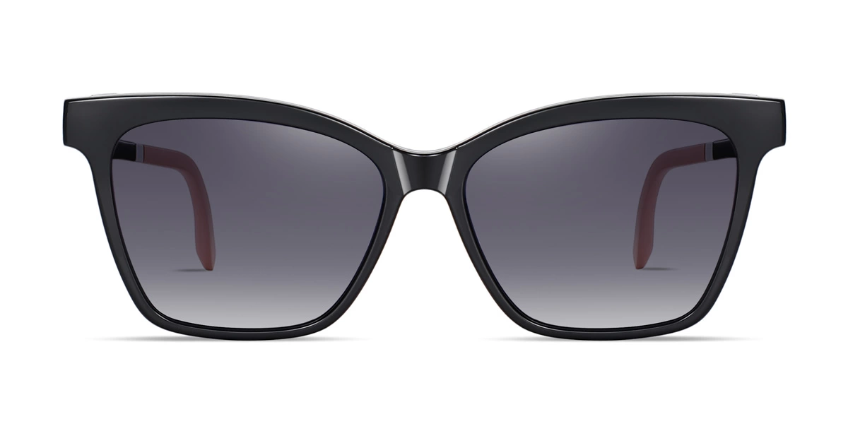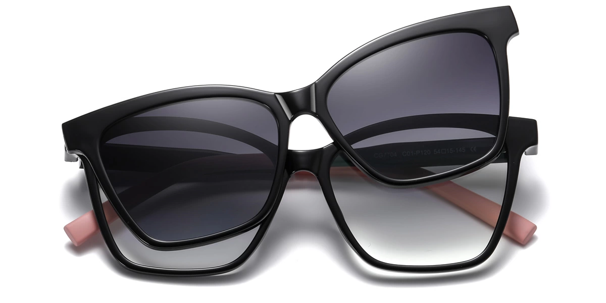 Made from high quality TR material, this cat eye sunglasses frame and clip-on kit is lightweight yet durable. The frame has a simple clean lined design with a smooth textured surface that gives it a lustrous shine.The clip-on lenses can easily be attached to the frame magnetically through the small magnetic rim around the edge. Conveniently change up your lens color and style without having to purchase a whole new pair of sunglasses. The clip-on mechanism ensures a secure fit so the lenses will not fall off during use.This offers 3 colors: Red frame with gray polarized clip-on, Beige frame with green polarized clip-on, Black frame with gradient gray polarized clip-on. Whether you're looking for a pop of color or seamless transitions between day and night, this cat eye sunglasses kit delivers fashionable optics and versatility.