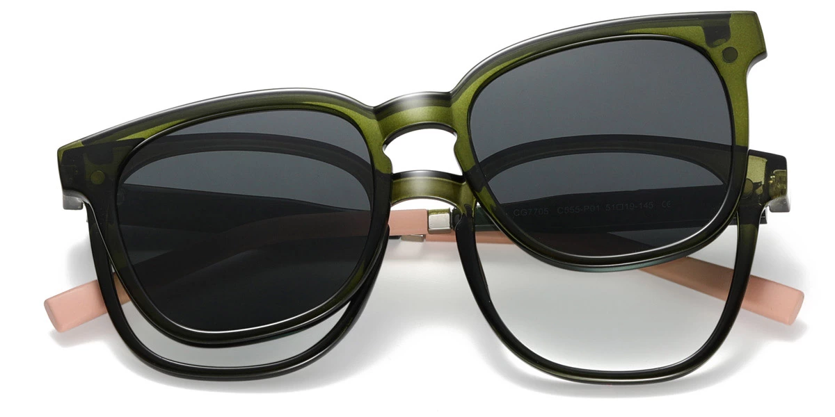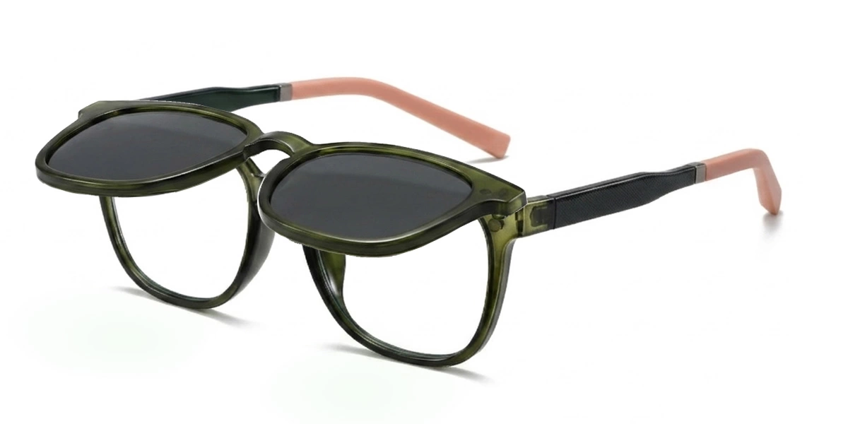 Experience the ultimate in convenience and eye protection with this large-fit hybrid set, featuring a premium TR90 frame and a matching TAC polarized clip-on. The frame showcases a sophisticated rectangular-to-oval silhouette, offering a balanced, modern look that suits a wide variety of face shapes. Engineered for the "on-the-go" lifestyle, this model features dual magnetic contact points on the frame corners, allowing the polarized clip to snap securely into place in an instant. The unique hinge design also supports a "flip-up" mode, letting you lift the sun-lens while it remains magnetically attached—perfect for transitioning between bright outdoor light and shaded indoor environments without removing your glasses.