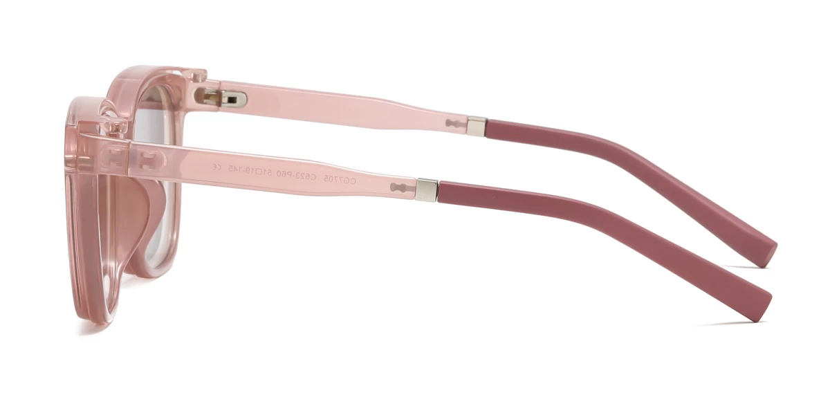 Onyx Black with Gradient Pink Lenses: A sleek, classic frame paired with a trendy, soft-transition polarized clip.