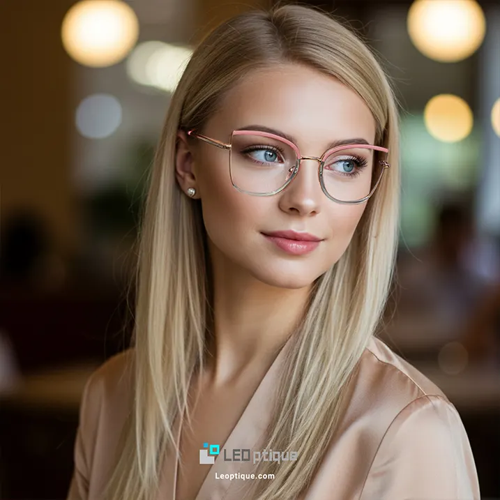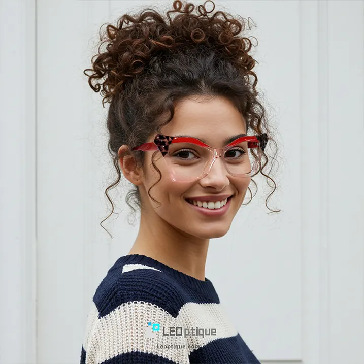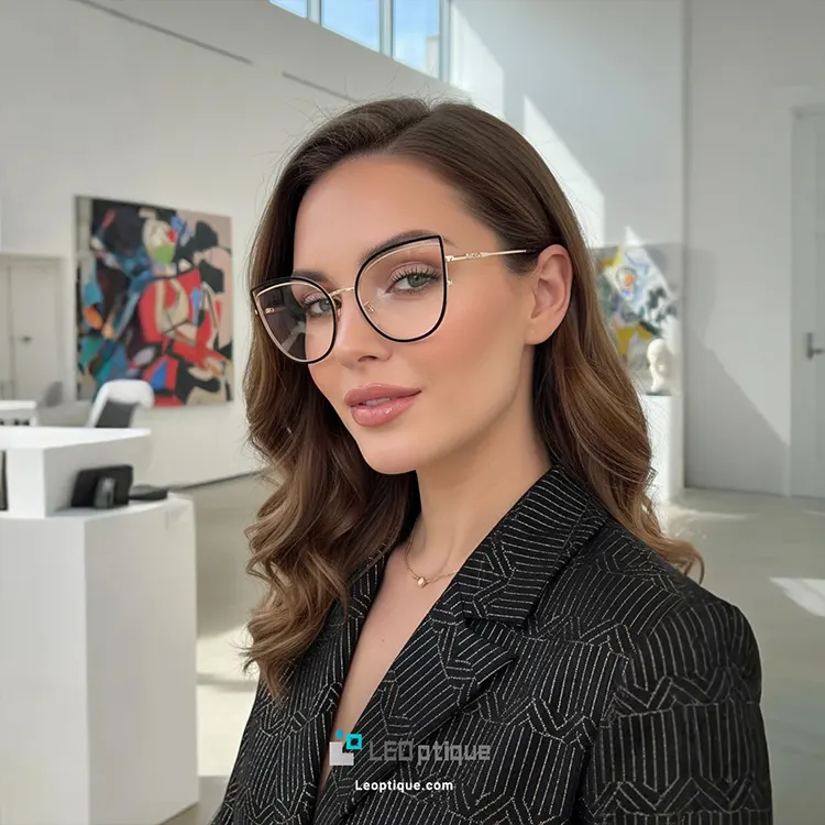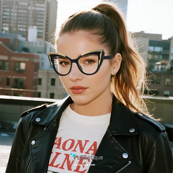 These cat-eye Glasses with Dual-Color Design Details. Crafted from durable TR90 material, these cat-eye glasses feature an oversized frame size for a bold eye-catching look. The standout design element is the dual-color accents - the top and rims come in a contrasting hue from the primary frame color. This unique touch adds eye-catching visual interest. Suitable for women, the flattering cat-eye shape is gently curved to complement most face shapes. The thick frame and larger lens size provide coverage without feeling heavy on the face. Available in four colorful options to suit any style - classic black, clear for a subtle look, feminine pink, or eye-catching purple.