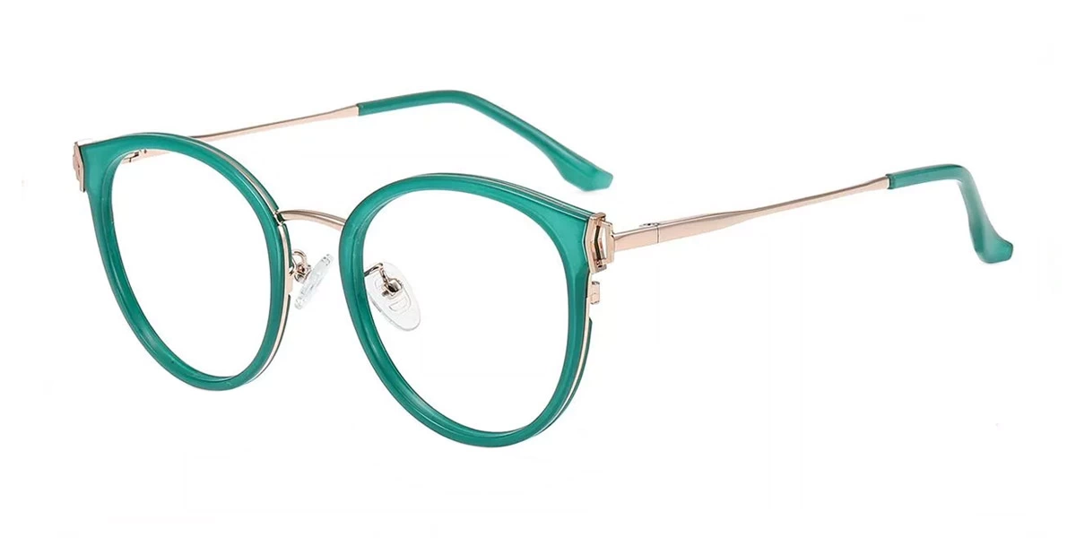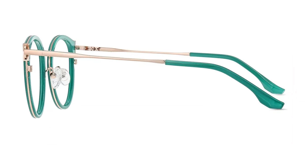 Introducing stylish new retro-round glasses featuring a metal alloy frame and acetate accents. These distinctive glasses blend trendy round lenses with a futuristic spring hinge design, highlighted by small cutout details on each corner. Their retro-meets-modern look is a vision of throwback style in an exciting new form.