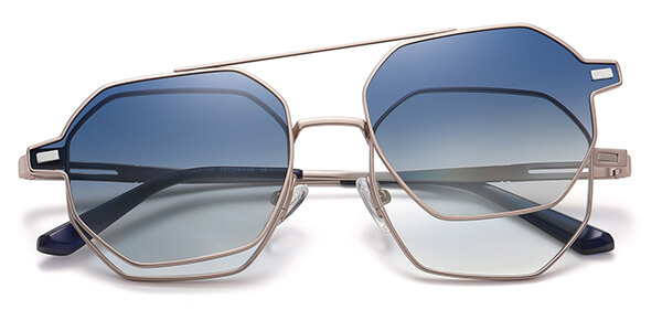 This stylish magnetic snap-on set features oversize round-shaped glasses and a seamless gray polarized sunshade that attaches easily at the corners with small magnets. The wide frame is made with high-quality TR90. The suitable nose pads and lightweight materials ensure it is comfortable for you to wear throughout the day. It is an excellent choice for you! It is available in a gradual blue frame with black clip-on, a black frame with black clip-on, and a clear frame with clear clip-on.