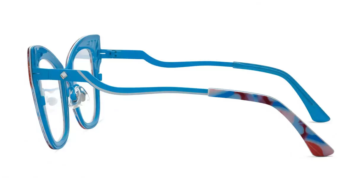Part of our exclusive Premium Collection, these large-fit frames are a masterpiece of mixed-material engineering. The design features a high-fashion cat-eye silhouette, where a sleek, ultra-thin acetate layer elegantly wraps around a sturdy alloy metal core. The true artistry is found in the corners, featuring architectural cut-out details that create a sense of lightness and avant-garde luxury. Every curve is meticulously sculpted to offer a fluid, sophisticated profile that serves as a wearable work of art.